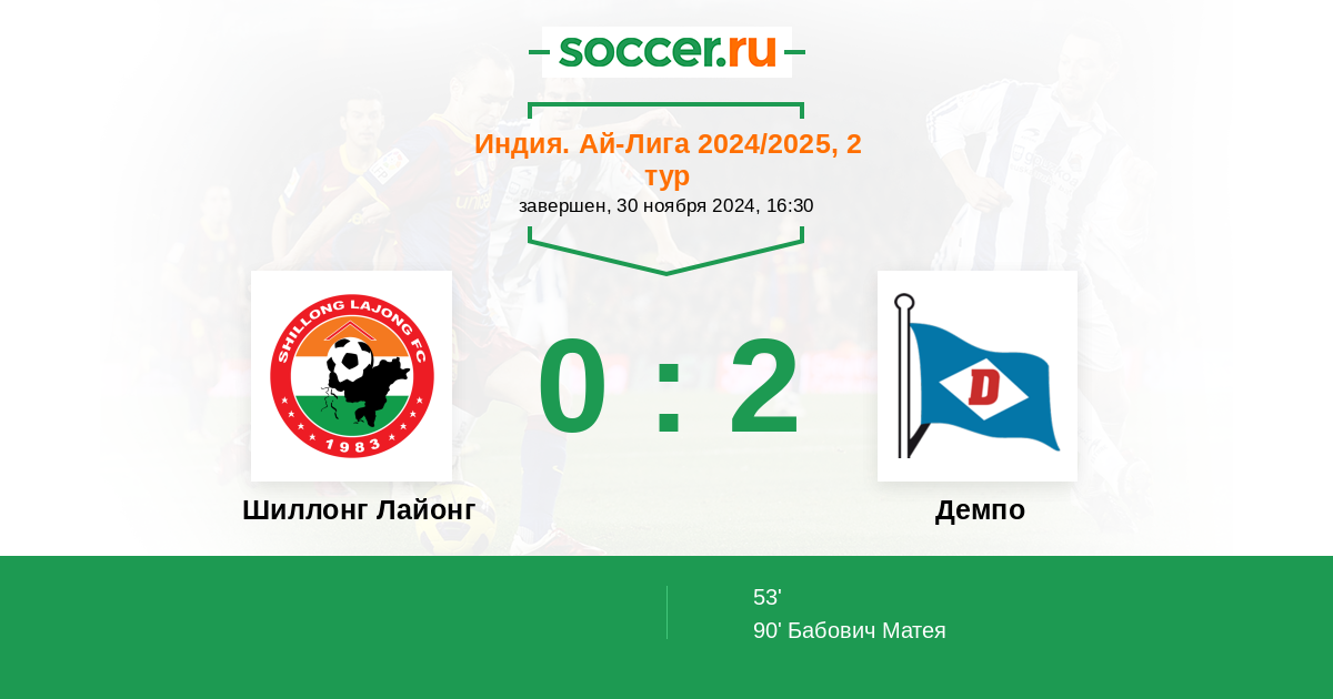 Протокол матча Шиллонг Лайонг против Демпо