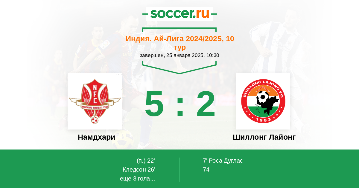Протокол матча Намдхари против Шиллонг Лайонг