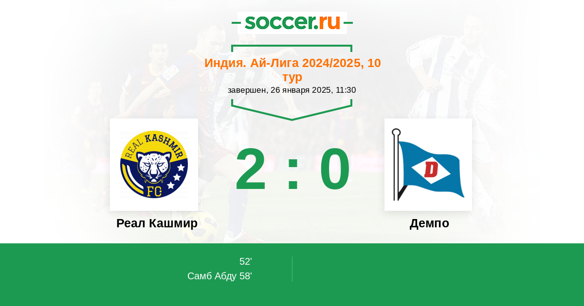 Протокол матча Реал Кашмир против Демпо