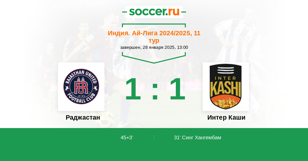 Протокол матча Раджастан против Интер Каши