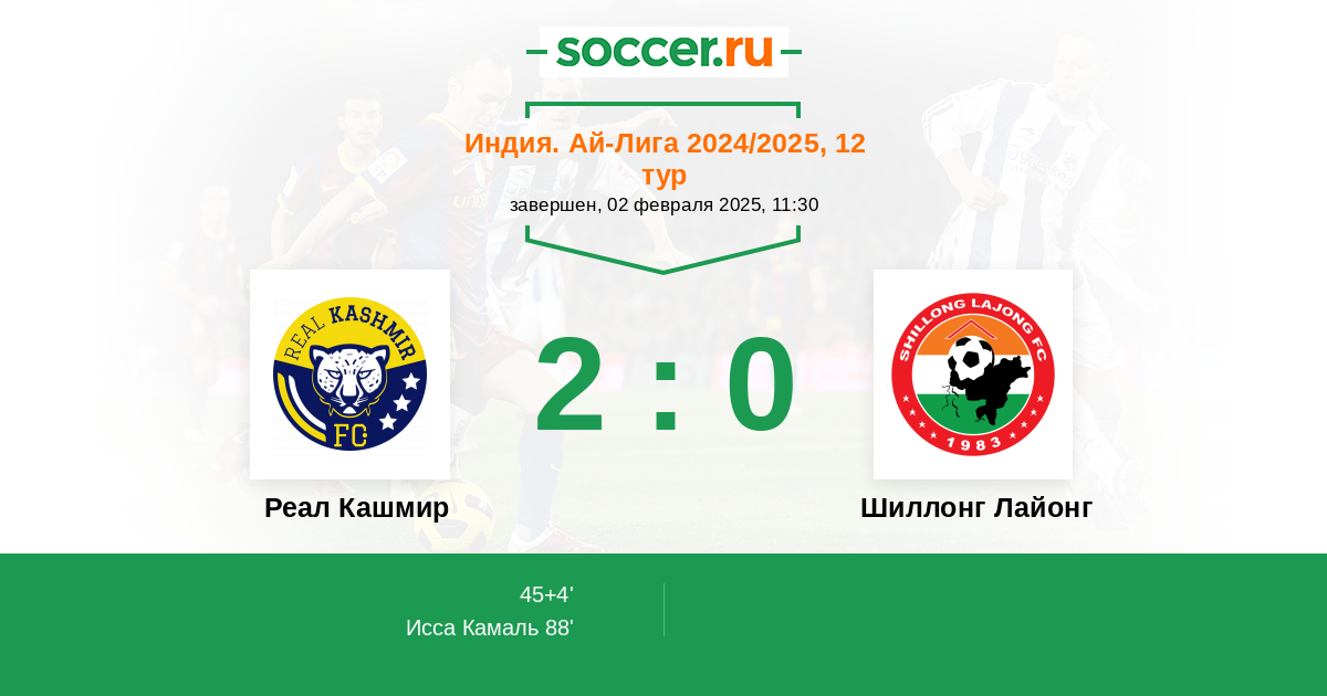 Протокол матча Реал Кашмир против Шиллонг Лайонг