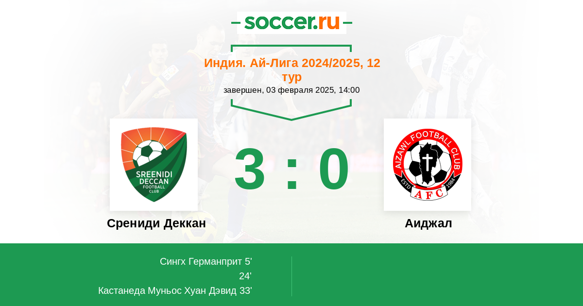 Протокол матча Срениди Деккан против Аиджал