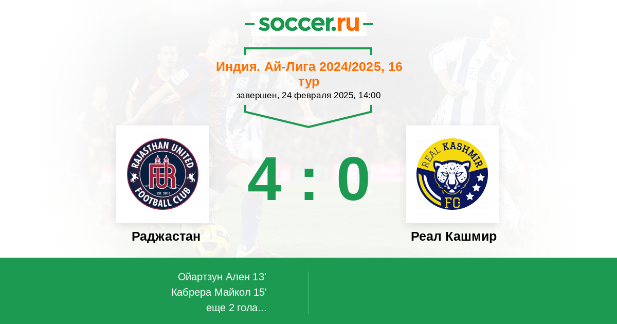 Протокол матча Раджастан против Реал Кашмир