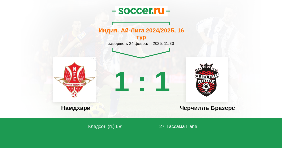 Протокол матча Намдхари против Черчилль Бразерс