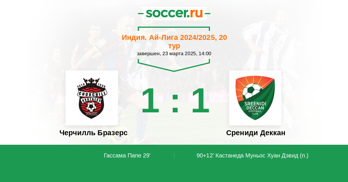 Протокол матча Черчилль Бразерс против Срениди Деккан