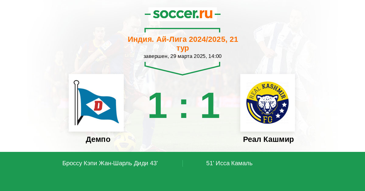 Протокол матча Демпо против Реал Кашмир