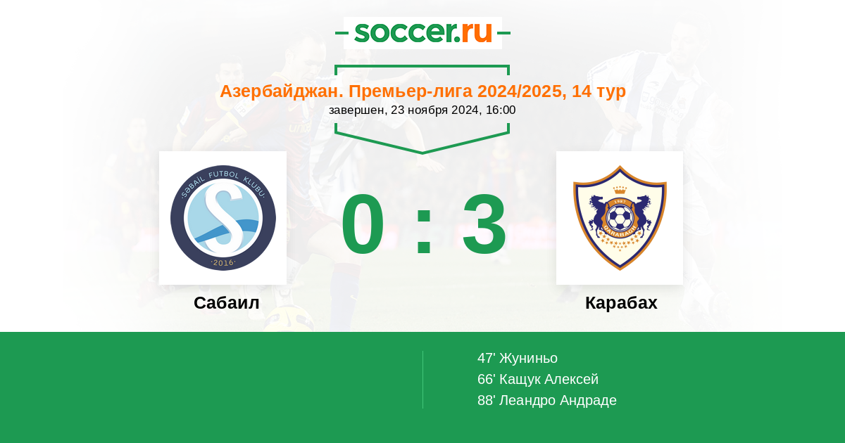 Протокол матча Сабаил против Карабах