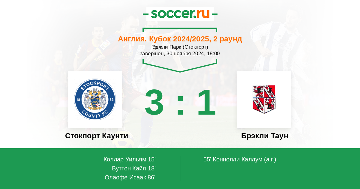 55' (2:1) Автогол Коннолли Каллум (16)