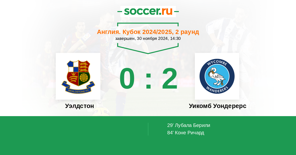 Протокол матча Уэлдстон против Уикомб Уондерерс