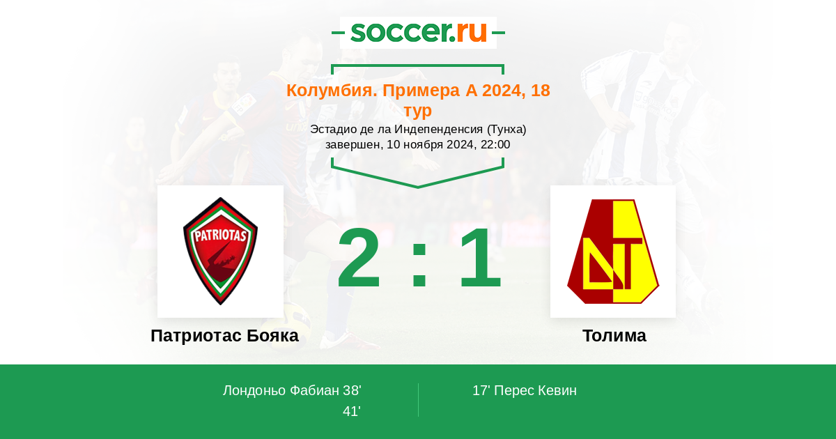 Протокол матча Патриотас Бояка против Толима