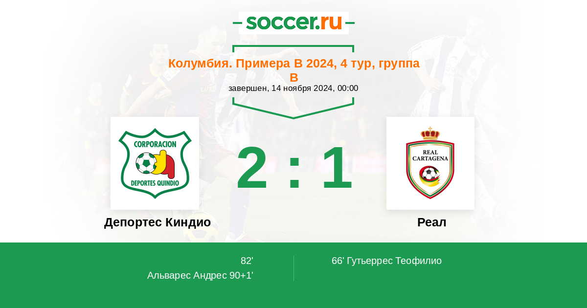 Протокол матча Депортес Киндио против Реал
