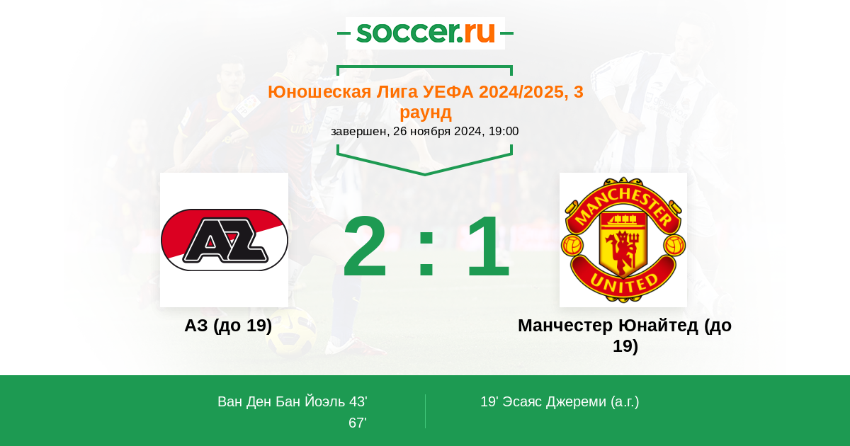 Протокол матча АЗ (до 19) против Манчестер Юнайтед (до 19)