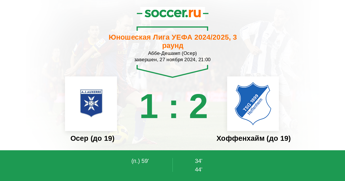 Протокол матча Осер (до 19) против Хоффенхайм (до 19)