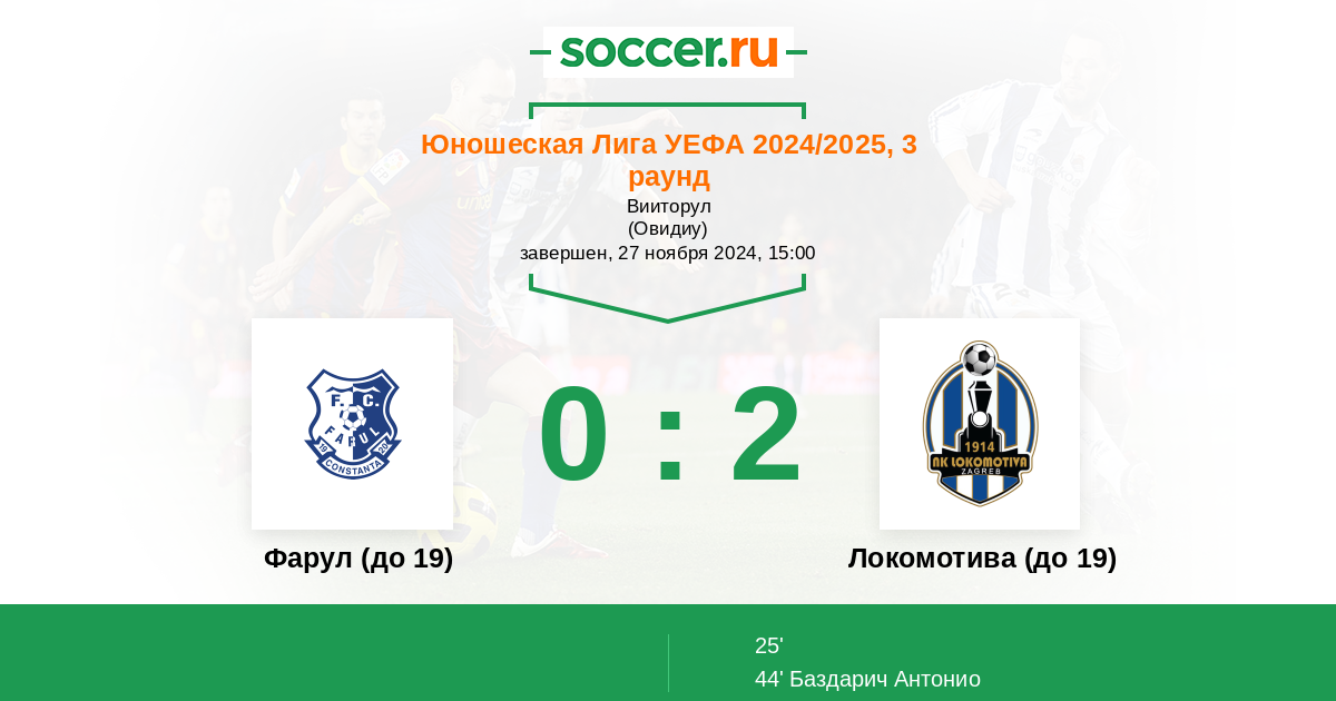 Протокол матча Фарул (до 19) против Локомотива (до 19)