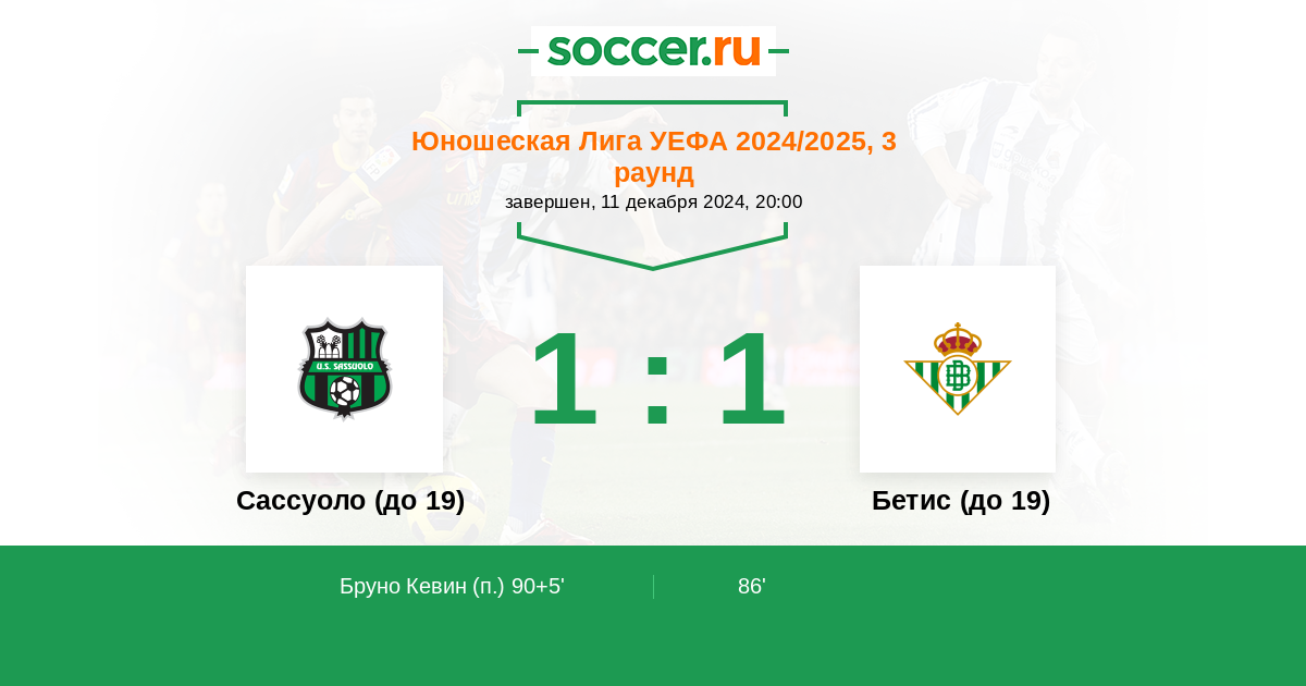 Протокол матча Сассуоло (до 19) против Бетис (до 19)