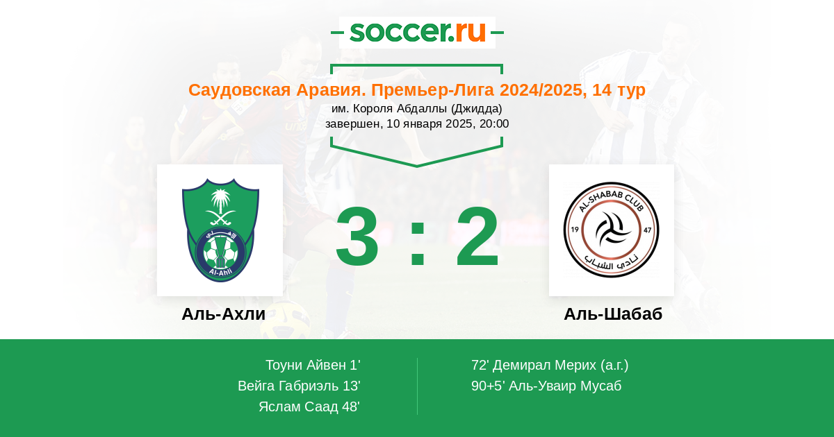 Протокол матча Аль-Ахли против Аль-Шабаб