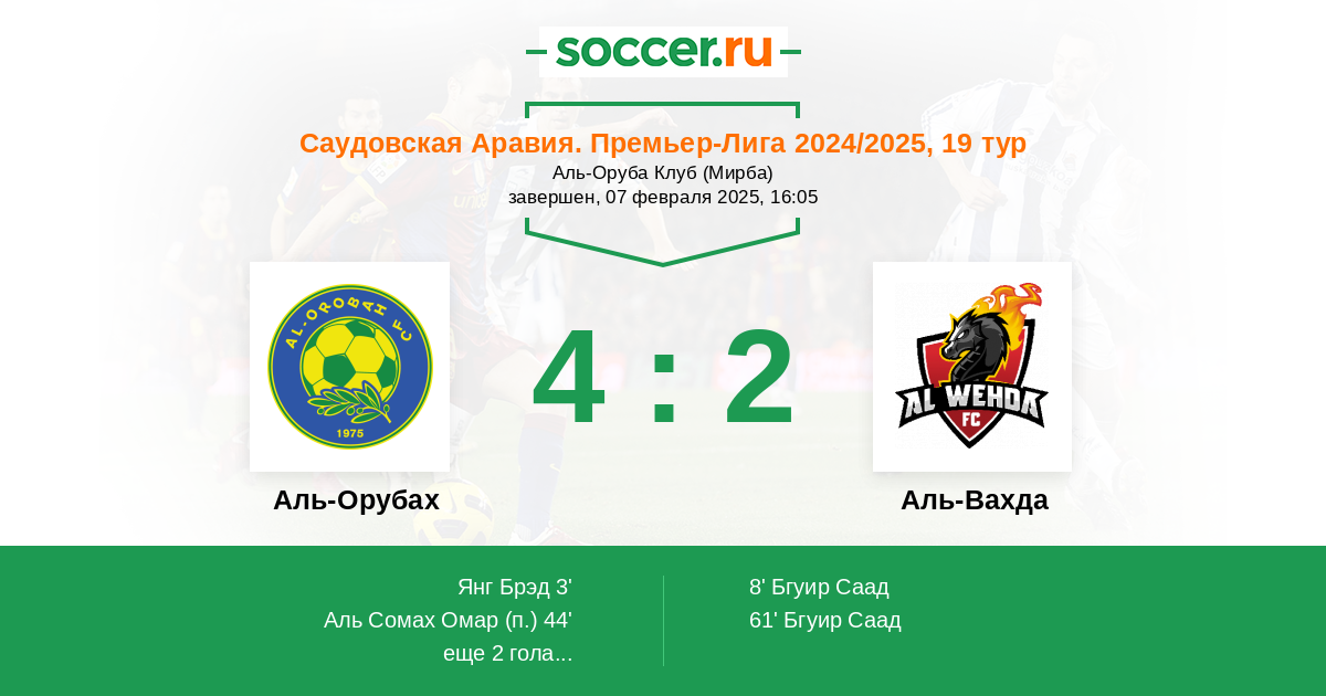 Протокол матча Аль-Оруба против Аль-Вахда