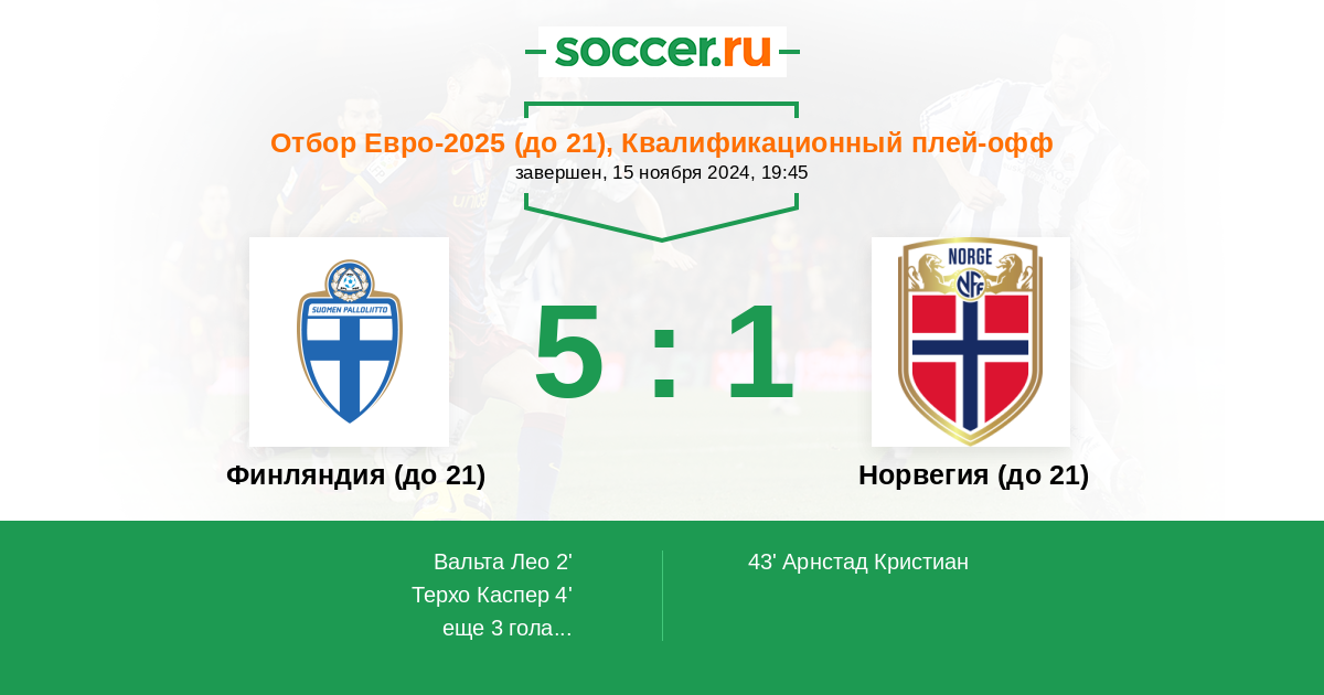 Протокол матча Финляндия (до 21) против Норвегия (до 21)
