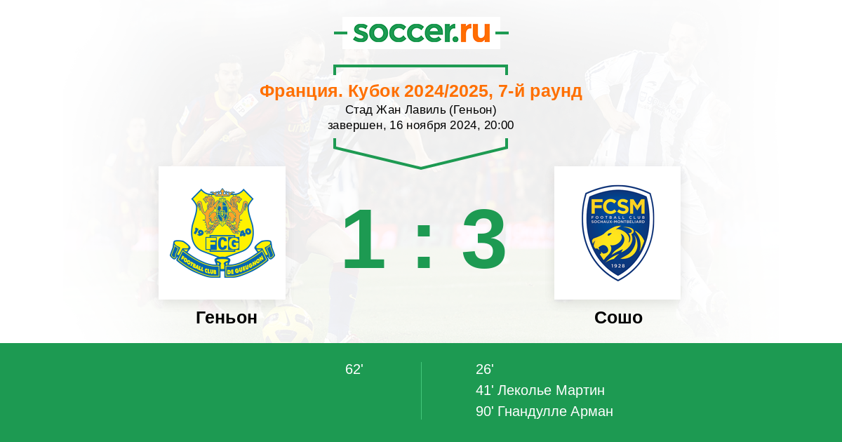 Протокол матча Геньон против Сошо