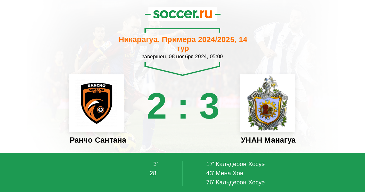 Протокол матча Ранчо Сантана против УНАН Манагуа