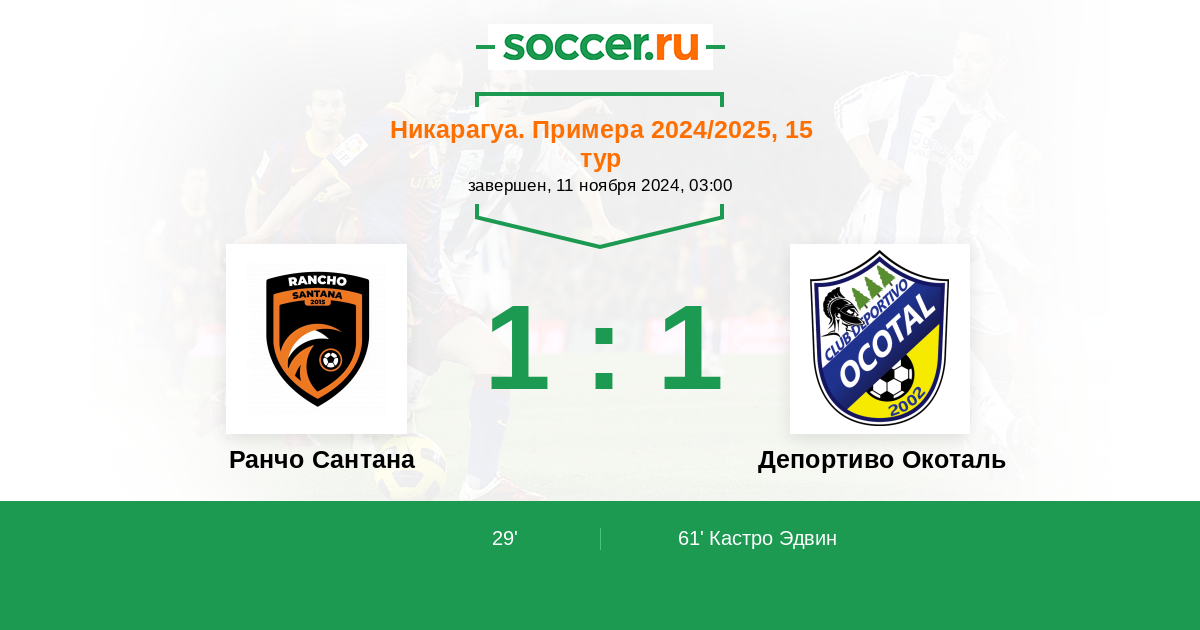 Протокол матча Ранчо Сантана против Депортиво Окоталь