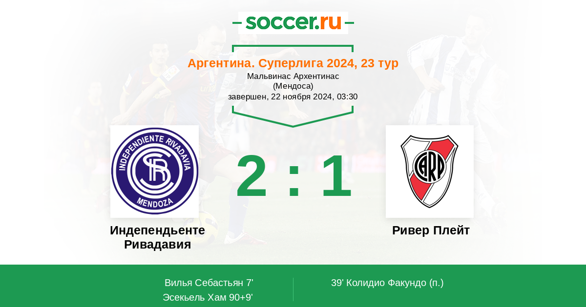 Протокол матча Индепендьенте Ривадавия против Ривер Плейт