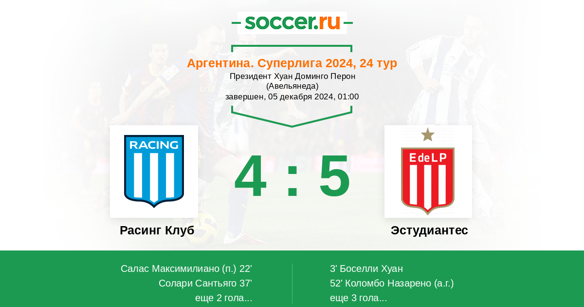 Протокол матча Расинг Клуб против Эстудиантес