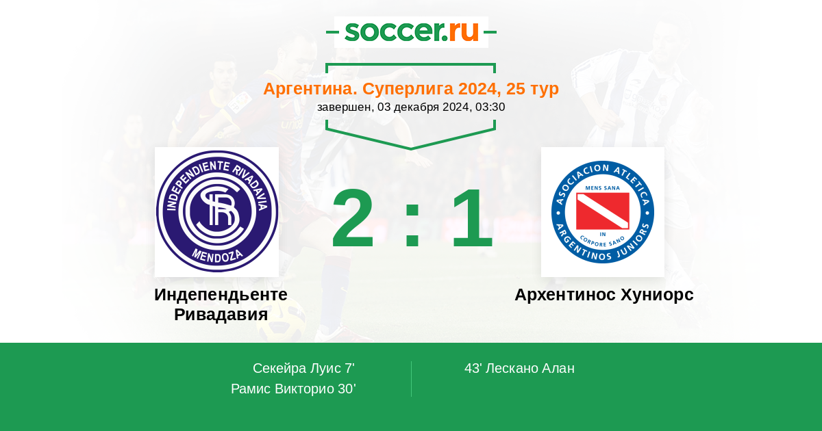 Протокол матча Индепендьенте Ривадавия против Архентинос Хуниорс