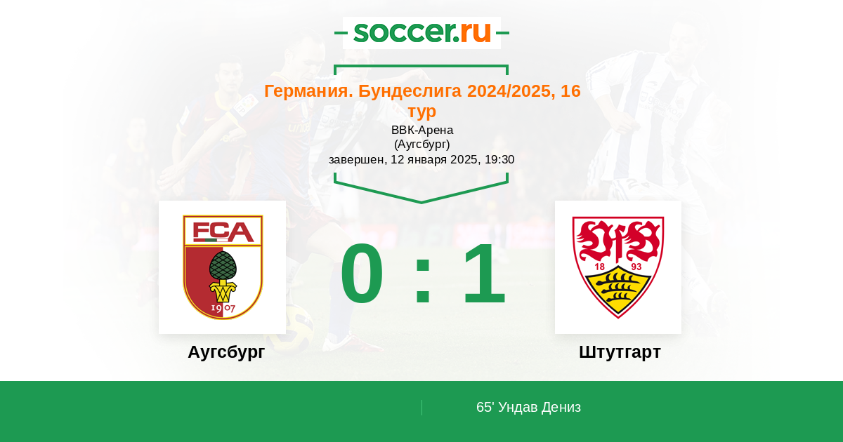 Протокол матча Аугсбург против Штутгарт