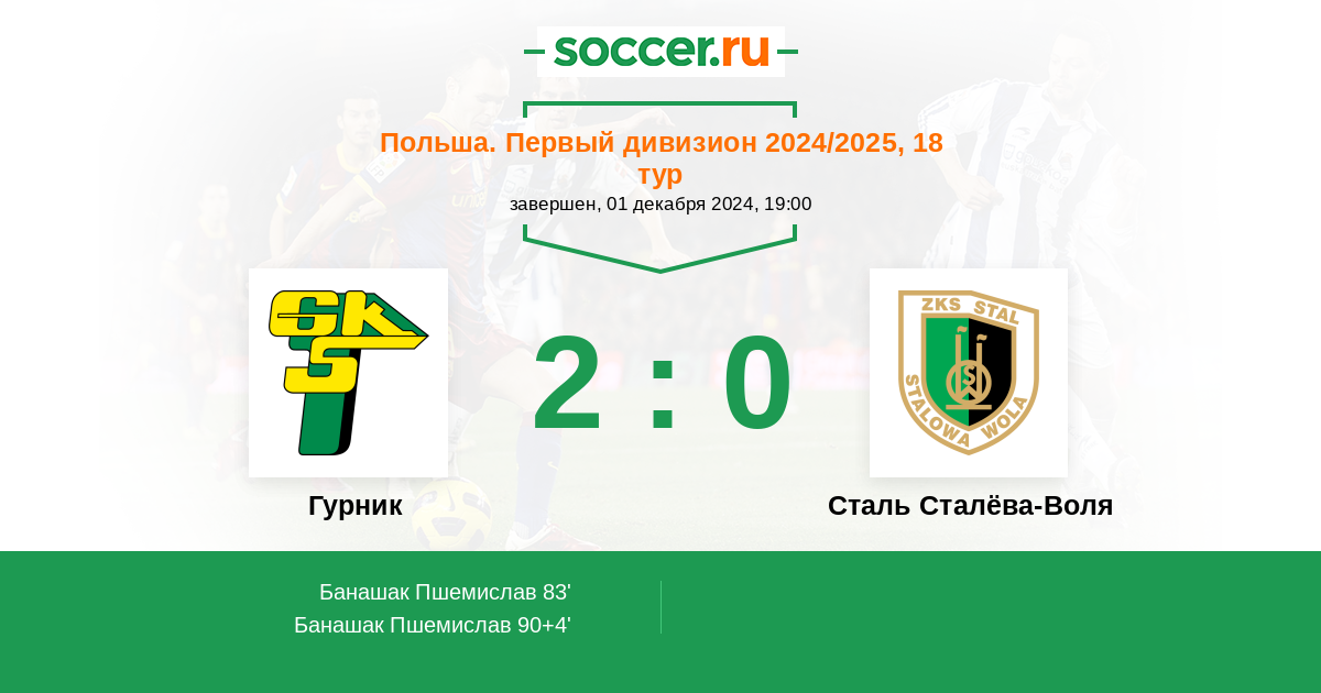 Протокол матча Гурник против Сталь Сталёва-Воля