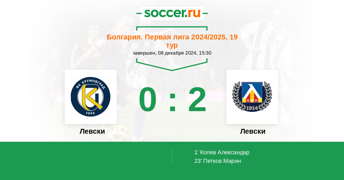 Протокол матча Левски против Левски