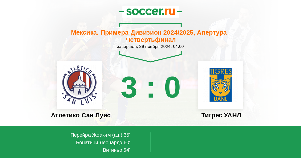 Протокол матча Атлетико Сан Луис против Тигрес УАНЛ