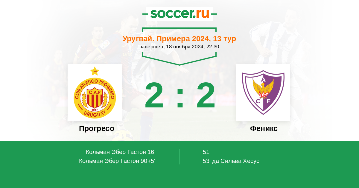 Протокол матча Прогресо против Феникс