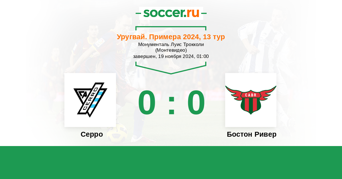 Протокол матча Серро против Бостон Ривер