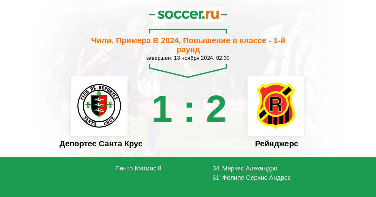 Протокол матча Депортес Санта Крус против Рейнджерс