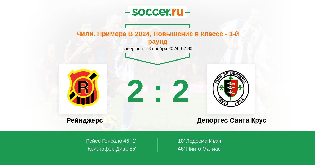 Протокол матча Рейнджерс против Депортес Санта Крус