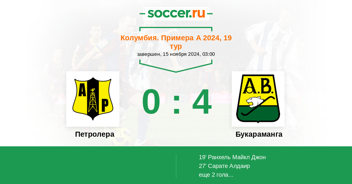 19' (0:1) Ранхель Майкл Джон (99) (Инестроса Фреди (8))