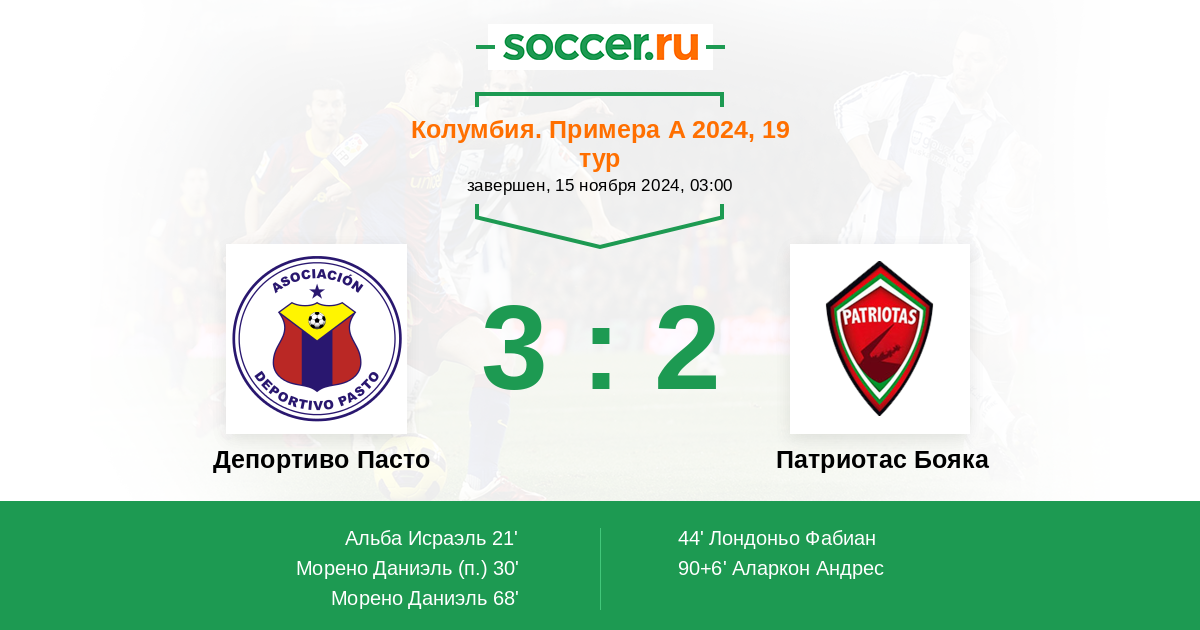 Протокол матча Депортиво Пасто против Патриотас Бояка