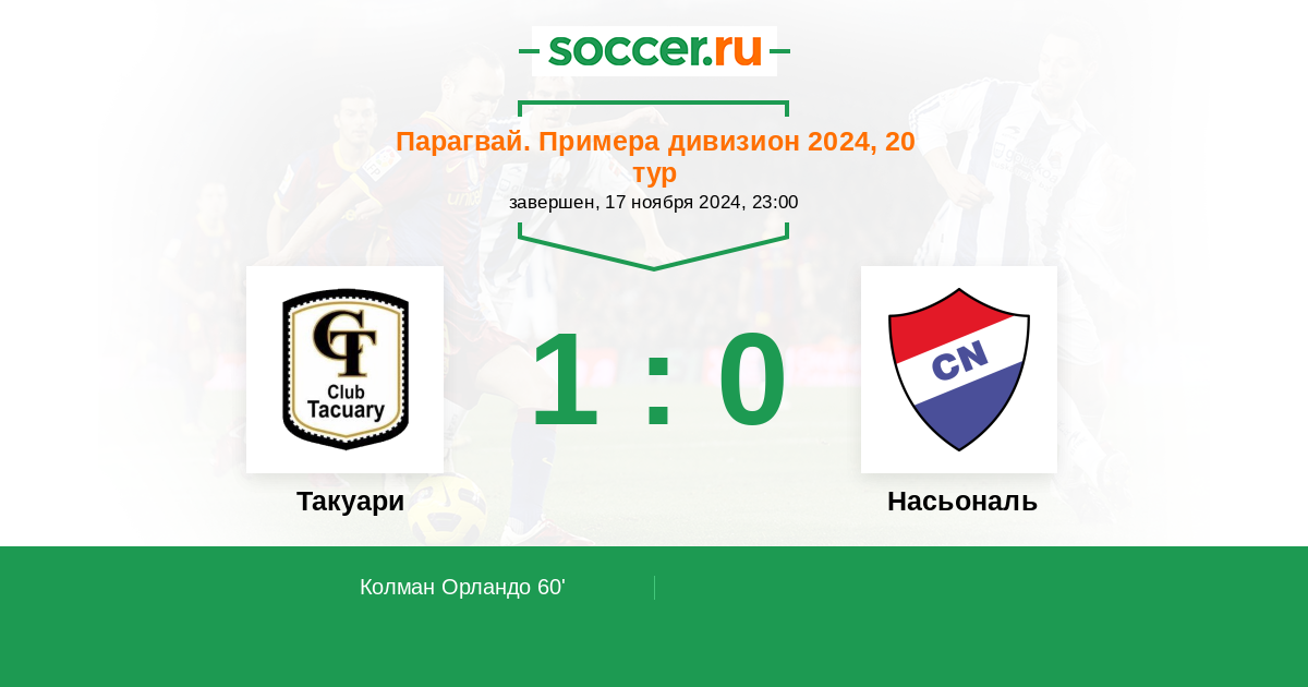 Протокол матча Такуари против Насьональ
