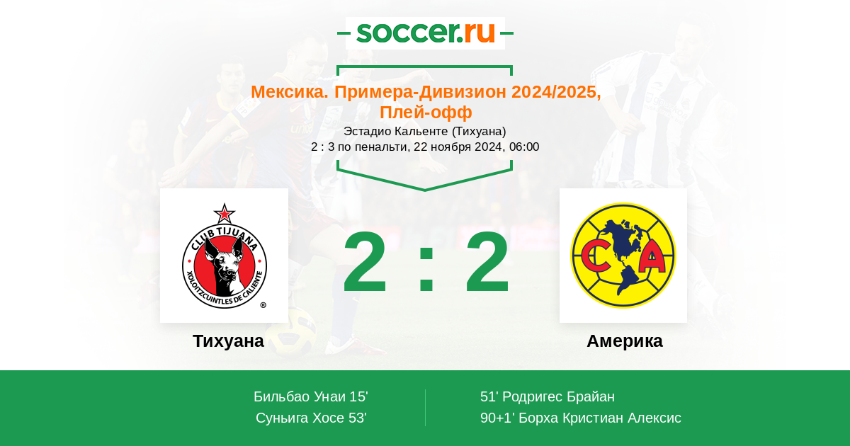 Протокол матча Тихуана против Америка