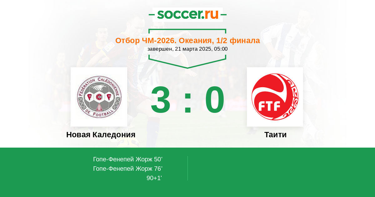 Протокол матча Новая Каледония против Таити