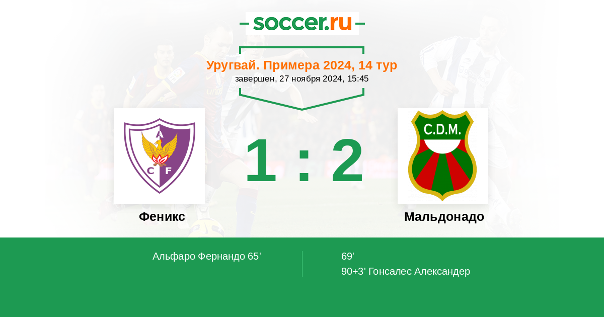 Протокол матча Феникс против Мальдонадо