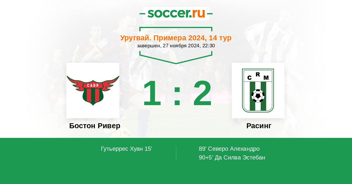 Протокол матча Бостон Ривер против Расинг