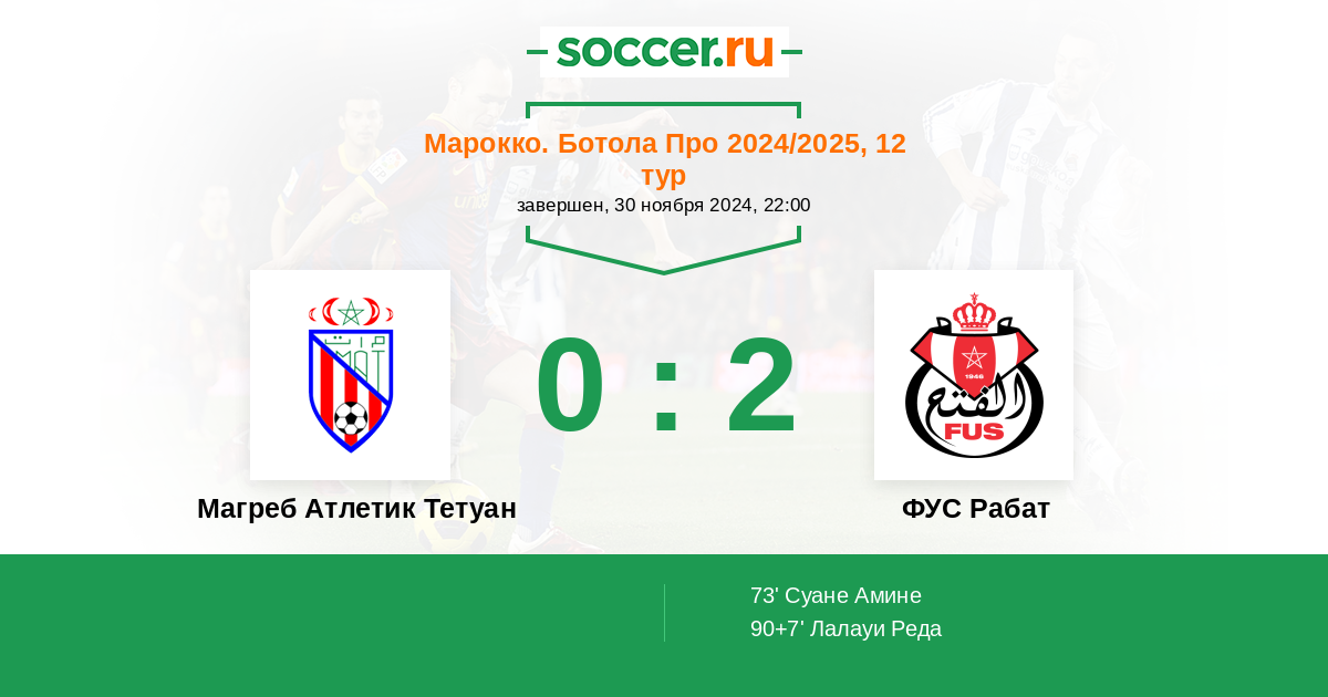 Протокол матча Магреб Атлетик Тетуан против ФУС Рабат