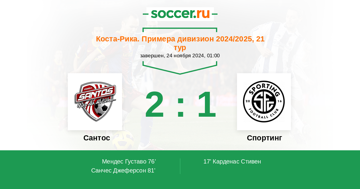 Протокол матча Сантос против Спортинг Сан-Хосе