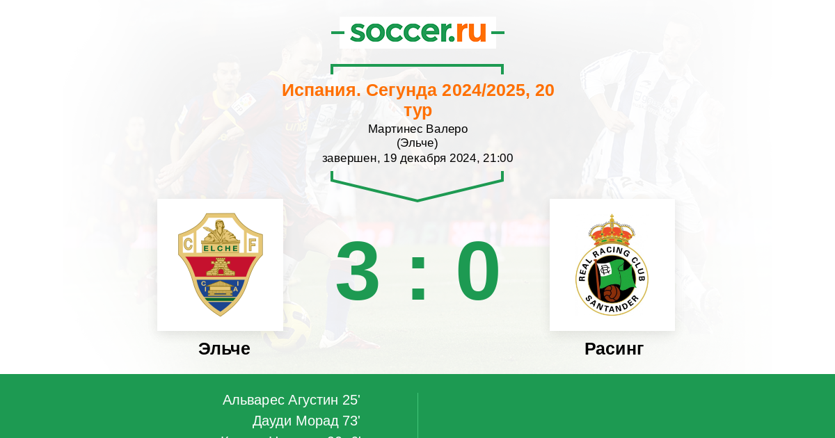 Протокол матча Эльче против Расинг