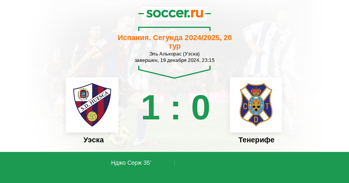 Протокол матча Уэска против Тенерифе