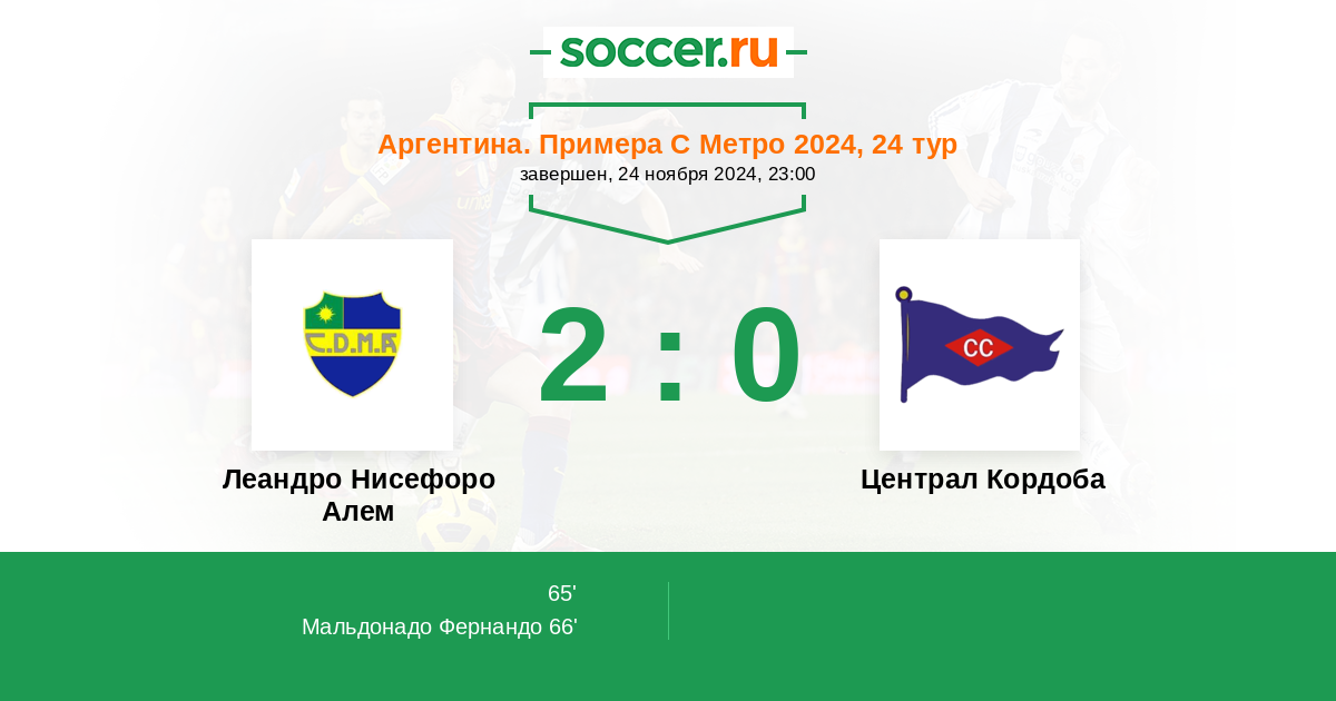 Протокол матча Леандро Нисефоро Алем против Централ Кордоба