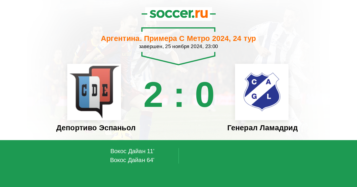 Протокол матча Депортиво Эспаньол против Генерал Ламадрид