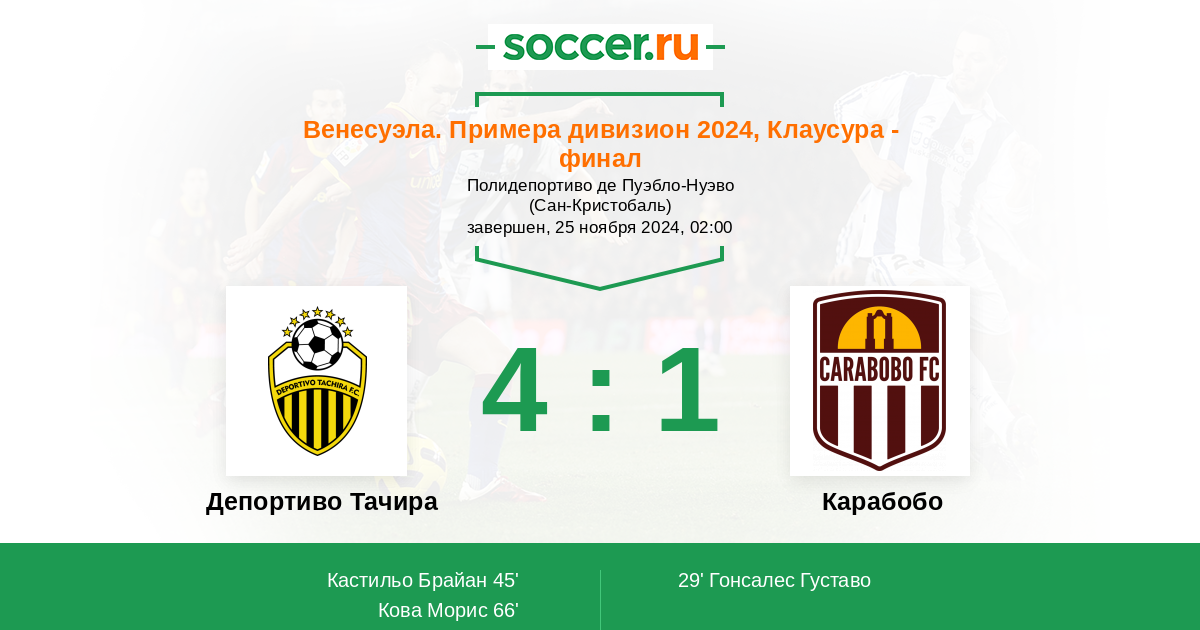 Протокол матча Депортиво Тачира против Карабобо